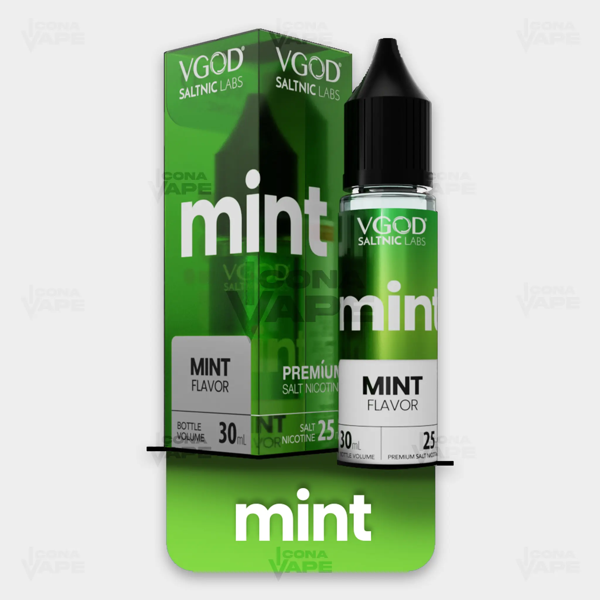 VGOD SaltNic Mint 30ml is a premium nicotine salt vape e-liquid delivering a clean, refreshing mint flavor with smooth cooling balance. Designed for pod systems, this 50VG/50PG salt nic formula provides crisp inhale, fresh exhale and fast nicotine satisfaction in 25mg and 50mg strengths. Buy original VGOD Mint SaltNic 30ml vape e-liquid in Pakistan from ICONA VAPE.
